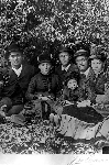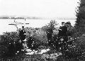 1890. Bild från en utflykt med Lundbergarnas ångbåt till Pärlandholmen mot Svannäs. Svannäs på andra sidan sjön. Ångbåten flaggprydd. Stående, från vänster: f.d kronolänsman och riksdagsman P.A Hellgren, teol. stud. Elis Björkman, postmästare Oscar Hellgren. Sittande, till vänster om elden: fröken Erika Ingberg, klockaren Rådwitz, fröken Gurli Romberg, gamla fru Hellgren /P.A:s hustru född Hultin/ Anton Lundberg, kapten på båten. Till höger om elden: kronolänsman Uno Sundelin, Vilhelmina., Rudolf Lindahl, fru Erika Sundelin/ Unos hustru/ kronolänsman Oscar Sundelin med fru från Åsele/Unos bror/Anmärkningar Bildtexten är spegelvänd i förhållande till fotot. Lars Dahlstedt, kyrkoherde i Vilhelmina 1883-1915 och riksdagsman i andra kammaren 1892-1901. Amatörfotograf som hämtade sina motiv främst från Vilhelminabygden. Materialet som består av negativ, diabilder och tidningsurklipp fick arkivnr. 1517-1519 i Vbm's gamla accesionskatalog 1964. Motiv Från ort: Vilhelmina Kommun Vilhelmina 1890 Namn: P.A Elis Oscar Erika Gurli Anton Uno Rudolf Erika Oscar Hellgren Björkman Hellgren Ingberg Rådwitz Romberg Lundberg Sundelin Lindahl Sundelin Sundelin Fotograf Namn: Lars Dahlstedt Från ort: Vansbro Levnadsår: 1855 — 1915 från sofiewww.vasterbottensmuseum.se/basen/blanketter/CgiText-GetRecord?FGID=Vbm.J%201222&Formname=/basen/blanketter/blanktfoto.html&Incl=000000000000&Recnr=12 |